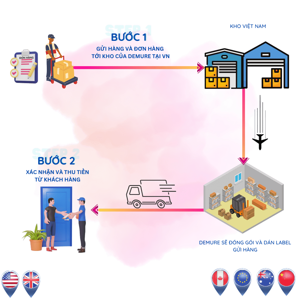 Vận chuyển lượng lớn tới kho của Demure trước và Vận chuyển nội địa ngay khi có khách hàng đặt sản phẩm